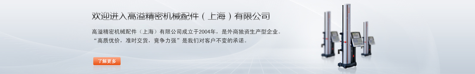高溢精密機械配件上海有限公司,是外商獨資生產(chǎn)型企業(yè)。“高質(zhì)優(yōu)價,準(zhǔn)時交貨,競爭力強”是我們對客戶不變 的承諾。“客戶滿意,員工樂意,股東得意”, 更是 我們公司永久的經(jīng)營理念。本公司延續(xù)臺灣數(shù)十年 的加工制造經(jīng)驗,具有完善的系統(tǒng)的管理制度, 擁有多臺CNC加工中心...